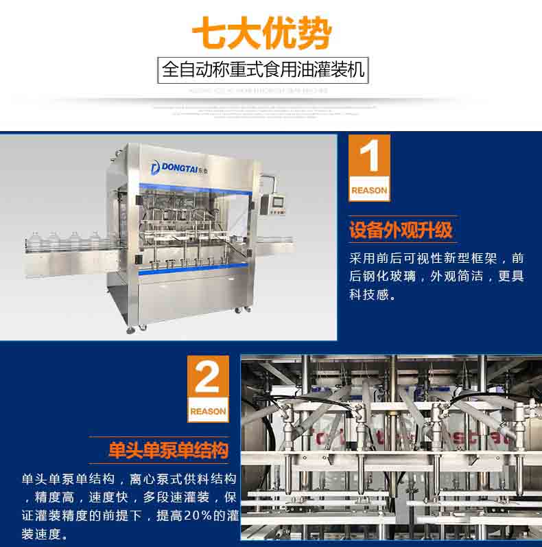 本機適用于對流體5kg-30kg的計重量灌裝。自動完成計數進瓶、計重量灌裝、輸送出瓶等一系列操作。 特別適用于水劑、食用油,潤滑油的定量灌裝,是食品,醫藥,化妝品以及精細化工等行業的包裝機。本機采用可編程控制器(PLC)、高速工控組態軟件進行實時監控的控制,使用調節方便。整機按GMP標準要求制作,各管路連接采用快裝方式,拆卸清洗方便,與物料接觸部位及外露部位均采用優質不銹鋼制造。整機安全、環保、安全、美觀、能適應各種不同環境工作。