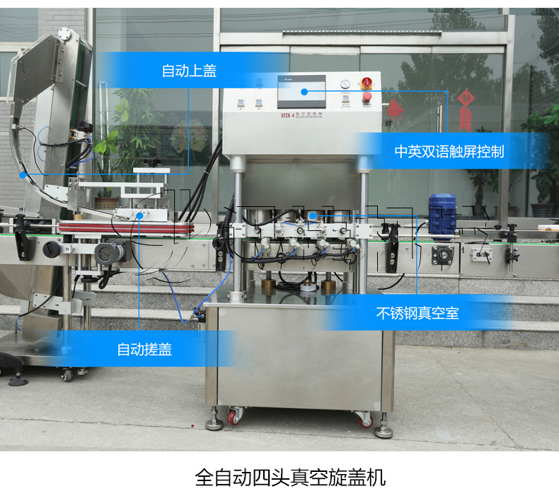 該生產(chǎn)線適合中小口徑三旋、四旋玻璃瓶調(diào)味醬的分裝,適合醬料、含顆粒黏稠物料的灌裝,物料接觸部分均采用316不銹鋼