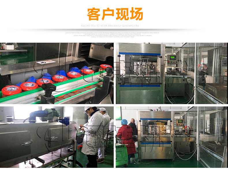 該生產(chǎn)線適合中小口徑三旋、四旋玻璃瓶調(diào)味醬的分裝,適合醬料、含顆粒黏稠物料的灌裝,物料接觸部分均采用316不銹鋼,整機304不銹鋼,符合食品衛(wèi)生標準。該機設計合理,機型小巧,立式結(jié)構(gòu),節(jié)省場地,操作方便。啟動部分均采用FESTO和臺灣AirTack的氣動元件。灌裝閥有氣動閥控制,灌裝精度更高,灌裝量和灌裝速度均可任意調(diào)整,灌裝悶頭采用防拉絲及升降灌裝裝置。
