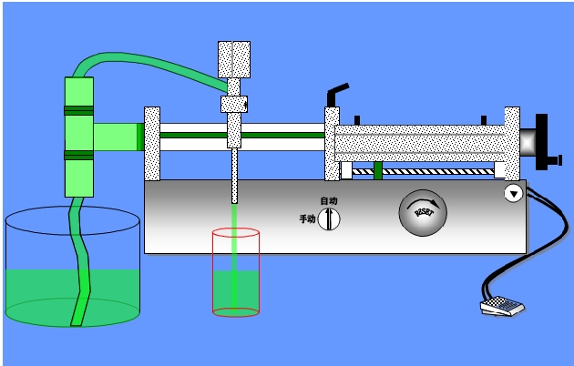 ? DY系列灌裝機是半自動活塞式灌裝機。通過氣缸帶動一個活塞來抽取和打出物料,用單向閥控制物料流向,并以磁簧開關控制氣缸的行程,即可調節灌裝量。