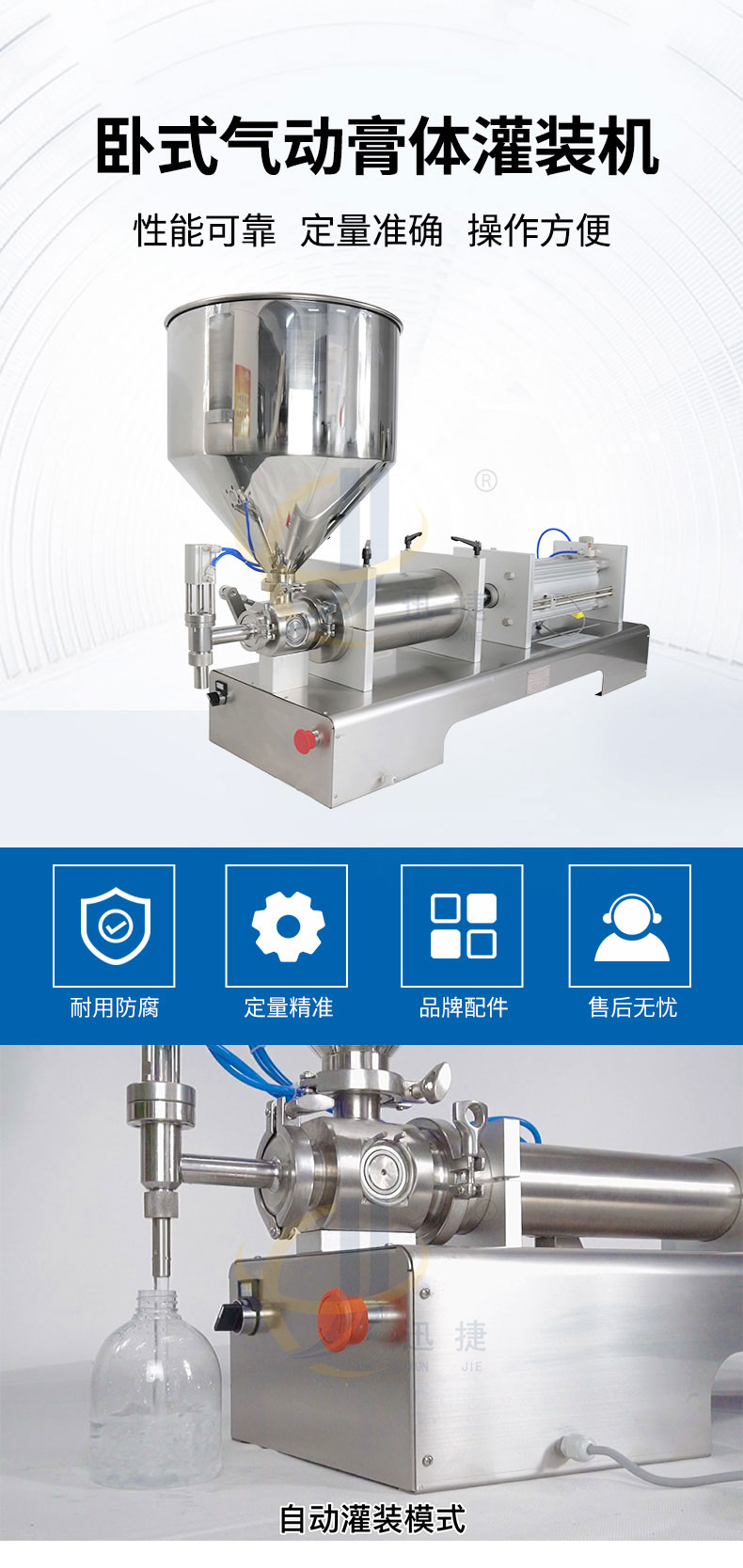 該機為半自動膏體灌裝機,是日化行業、醫藥行業、食品行業、油墨行業和涂料行業的理想灌裝充填設備,灌裝悶頭采用防滴漏。
