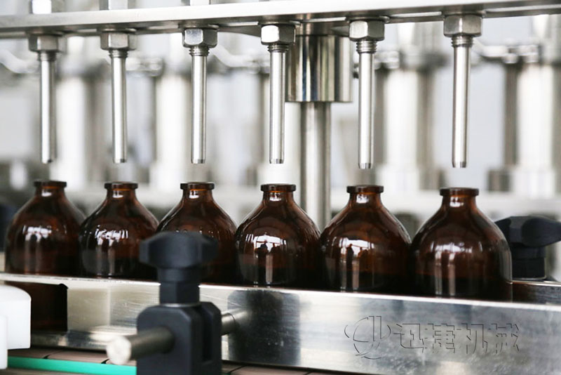 灌裝時灌裝頭潛入瓶底,緩慢上升,可有效防氣泡。灌裝針頭設有防滴漏裝置,確保灌裝精度,合格率大于99%。用柱塞式計量泵執行灌裝,精度高;泵的結構采用快接式拆卸機構,便于清洗、消毒。