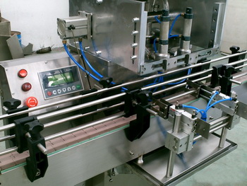 本機(jī)與物料接觸均為不銹鋼制作,完全符合GMP標(biāo)準(zhǔn)。快速活接連接,拆洗方便,灌裝量、灌裝速度均可調(diào)節(jié),更 換不同規(guī)格形狀的瓶子,不需更換零件,調(diào)整容易。另灌裝頭設(shè)有防滴漏裝置,灌裝無拉絲、滴漏;有瓶灌裝、無瓶不灌裝;設(shè)有計(jì)數(shù)功能,能準(zhǔn)確顯示當(dāng)前產(chǎn)量、 前班產(chǎn)量;并備有自動(dòng)加料控制接口,實(shí)現(xiàn)對(duì)加料的自動(dòng)控制。各動(dòng)作平穩(wěn)、準(zhǔn)確無誤,是目前較為理想的機(jī)電氣一體化產(chǎn)品。(該設(shè)備需要配備輔助設(shè)備:真空泵,真空儲(chǔ)氣罐)