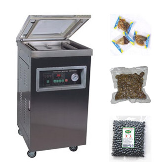 DTDZ系列真空包裝機,以塑料復合膜或塑料鋁箔復合膜為包裝材料,為各種儀器、藥品、糧食、果品、醬菜、果脯、水產品、土特產、化工原料、電子元件及軍 需用品等,不論是固體、粉狀、糊狀或液體均可進行抽真空熱封包裝。由于袋內真空度高,可有效地防止脂類品氧化合好氧性細菌繁殖而引起的物品腐敗和變質,保 鮮、保味、保色的功能,延長產品(商品)的儲存時間,同時對某些松軟的物品,經真空包裝后可縮小包裝體積便于運用和儲存。